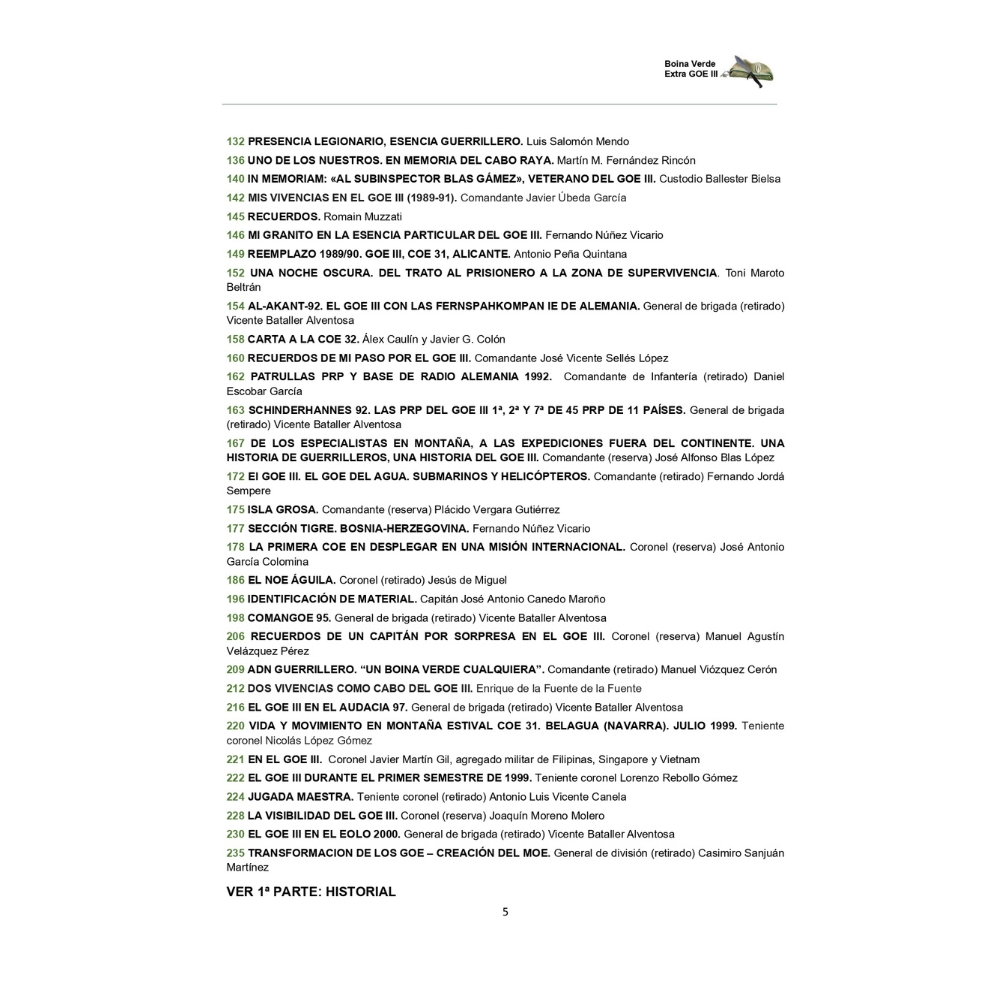EXTRA REVISTA BOINA VERDE Nº14 GOE III 2ª PARTE ARTICULOS
